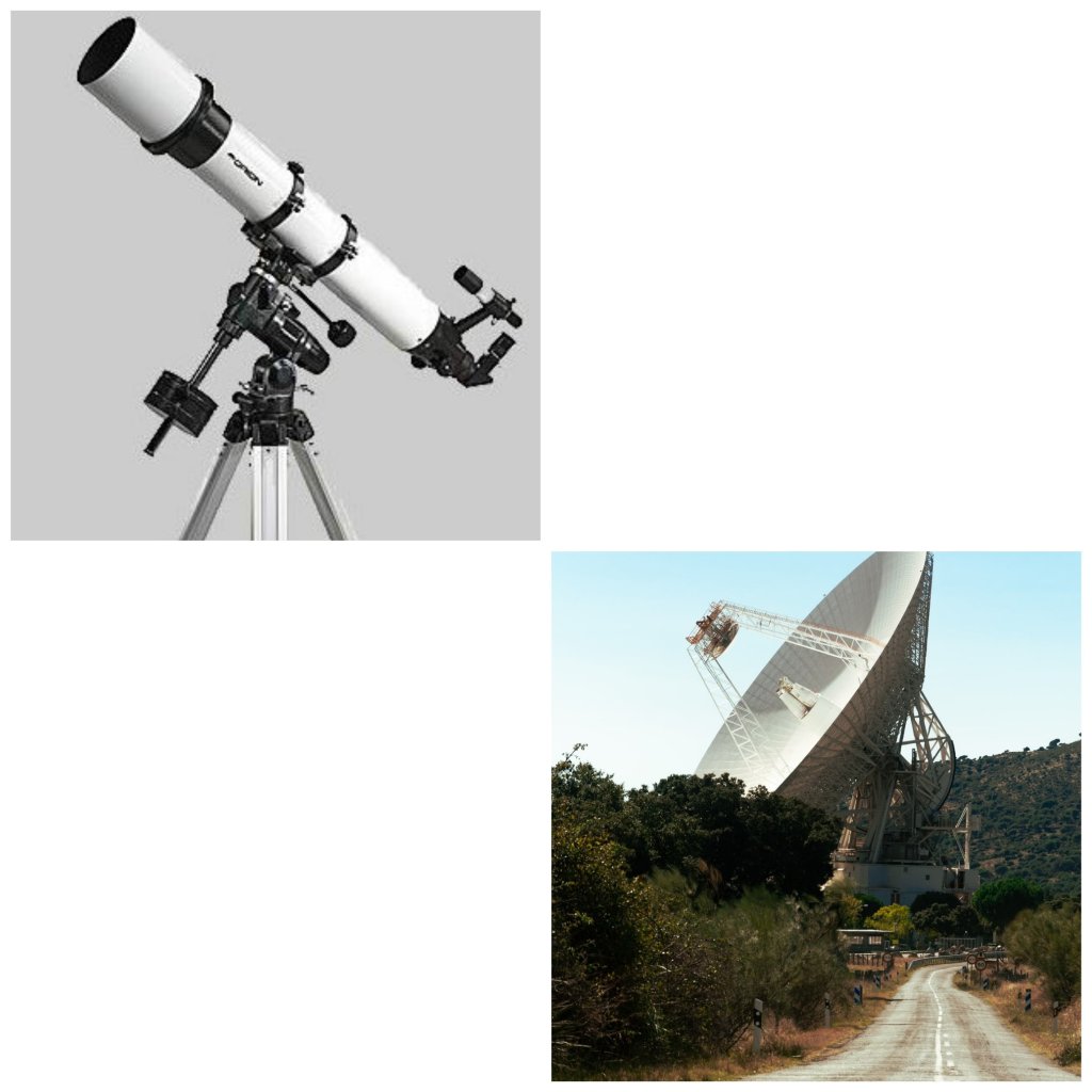 Radio telescope which are fixed in earth recieve radio signals and they magnify the signals.